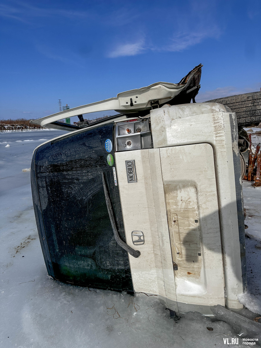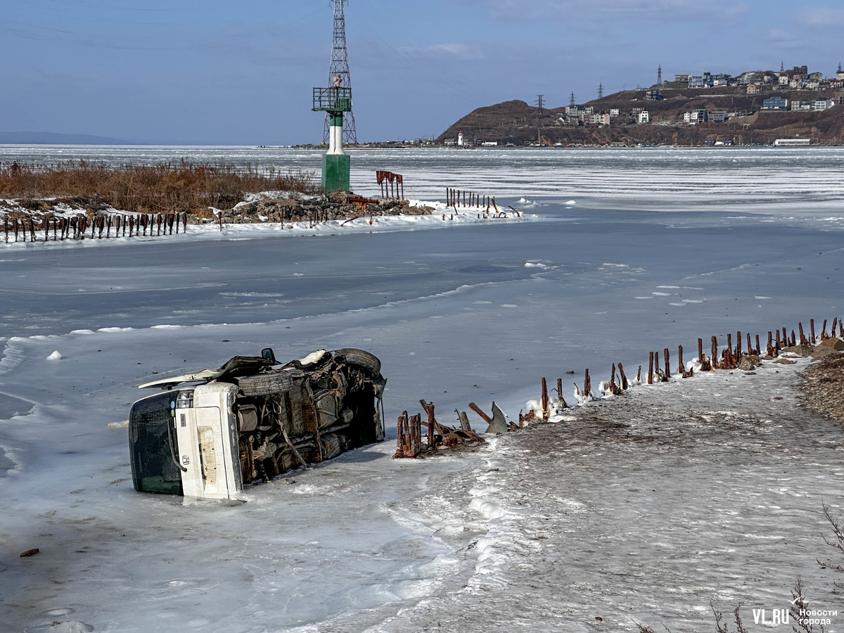 На Русском острове автомобиль Honda Mobilio Spike вылетел в море в посёлке Канал и оказался на боку в нескольких метрах от берега. Минивэн примерно на треть погрузился в воду и оказался скован льдами. Когда и как это произошло, оперативно выяснит не удалось. Водитель, судя по всему, выбрался из машины через открытую дверь и сорвал с неё номера. Гуляющие рядом горожане с любопытством разглядывают и фотографируют автомобиль, как памятник запрету выезда на лёд.