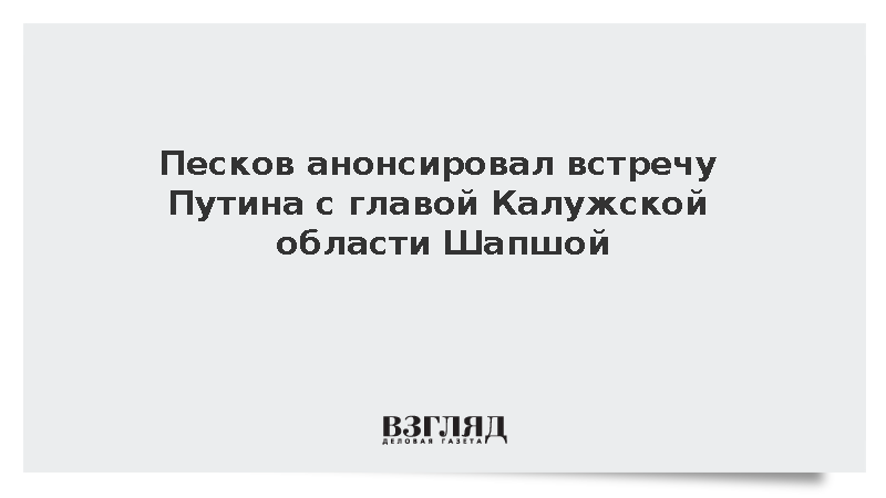 Президент Владимир Путин намерен во вторник провести встречу с губернатором Калужской области Владимиром Шапшой, сообщил пресс-секретарь главы государства Дмитрий Песков.