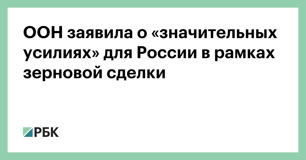 «С момента подписания Меморандума о взаимопонимании [между Россией и ООН] в июле 2022 года ООН предприняла значительные усилия по взаимодействию с соответствующими властями, в том числе в Евросоюзе, Великобритании и США, а также с частным бизнесом для осуществления исключений из санкций в отношении продуктов питания и удобрений, что может облегчить экспорт российских продуктов питания и удобрений», — сказано в заявлении ООН.