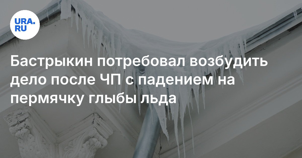 Председатель Следственного комитета России Александр Бастрыкин поручил возбудить уголовное дело в связи с ЧП в Пермском крае, где на пенсионерку упала глыба льда. Поводом послужила жалоба, поступившая от жительницы края через приемную Бастрыкина в соцсети «ВКонтакте».