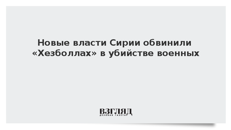 Сирийская газета Al Watan, сообщает, что новые власти Сирии обвинили ливанское шиитское движение «Хезболлах» в убийстве троих сотрудников безопасных сил. По данным издания, боевики пересекли границу Сирии в воскресенье и убили троих сирийских военных, после чего вернулись в Ливан. Газета также утверждает, что тела погибших были забраны сторонниками «Хезболлах».