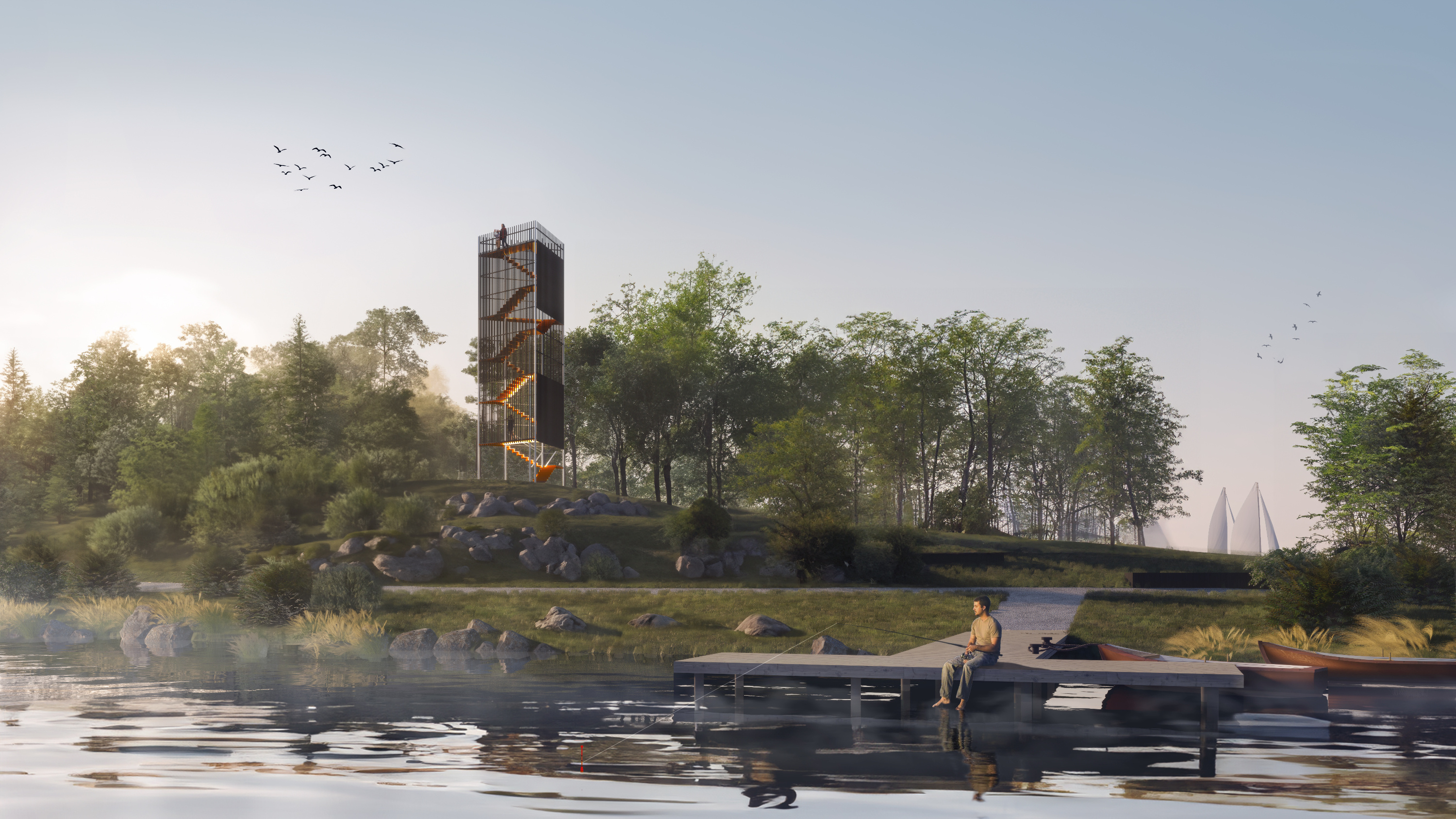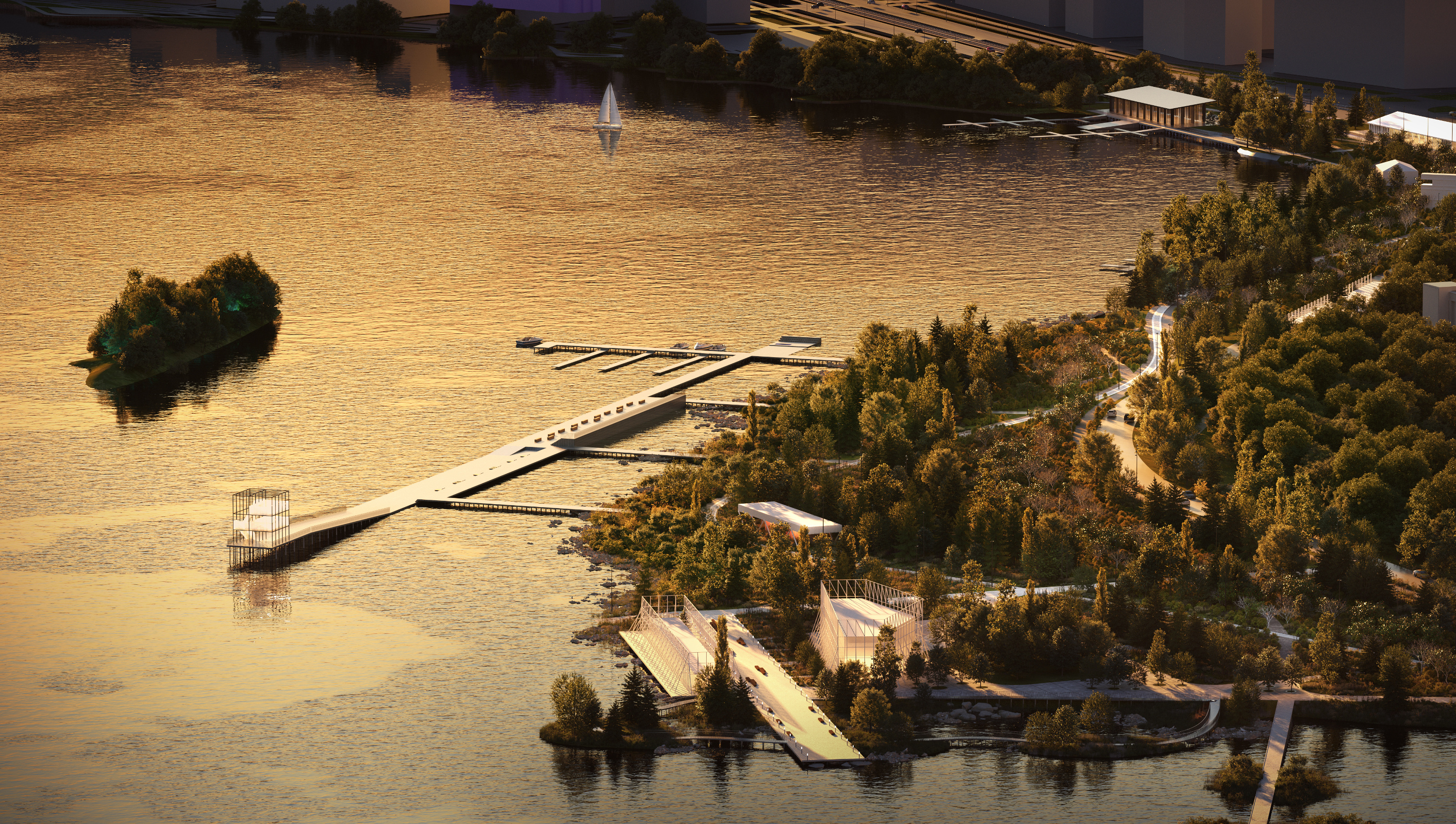 Идем дальше. Тут предлагают разместить амфитеатр у воды, оборудовать причал, выделить зону для рыбалки и поставить маяк.