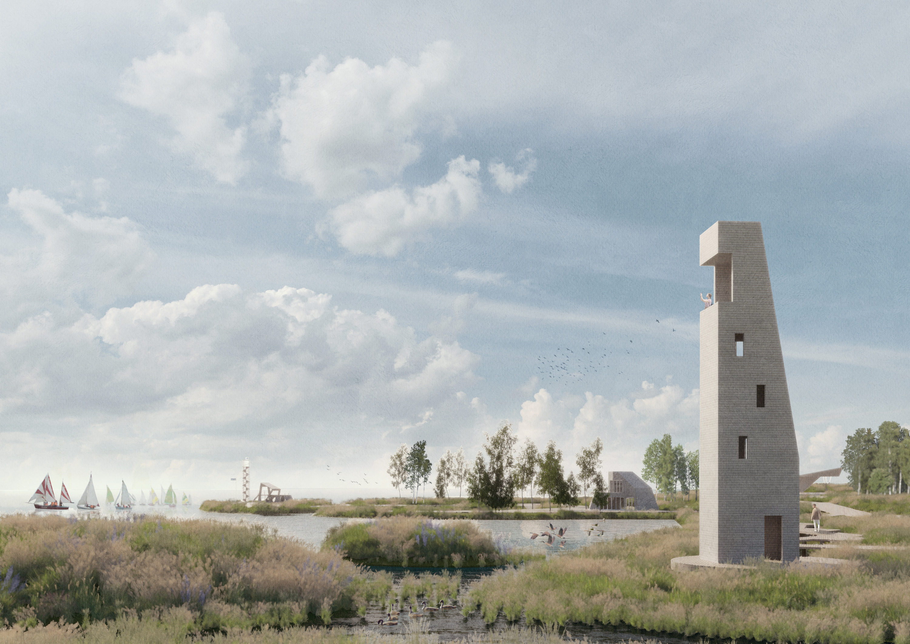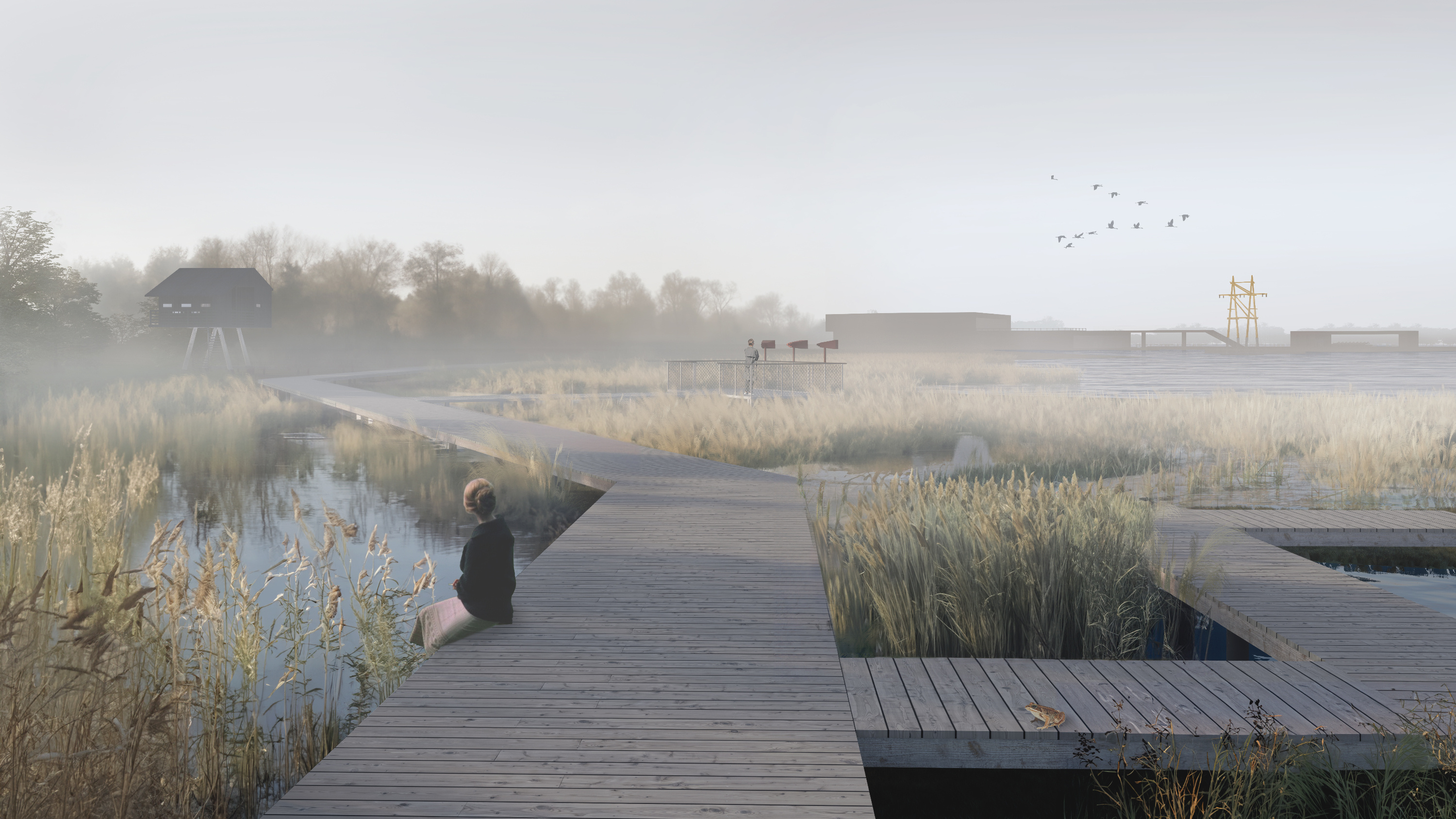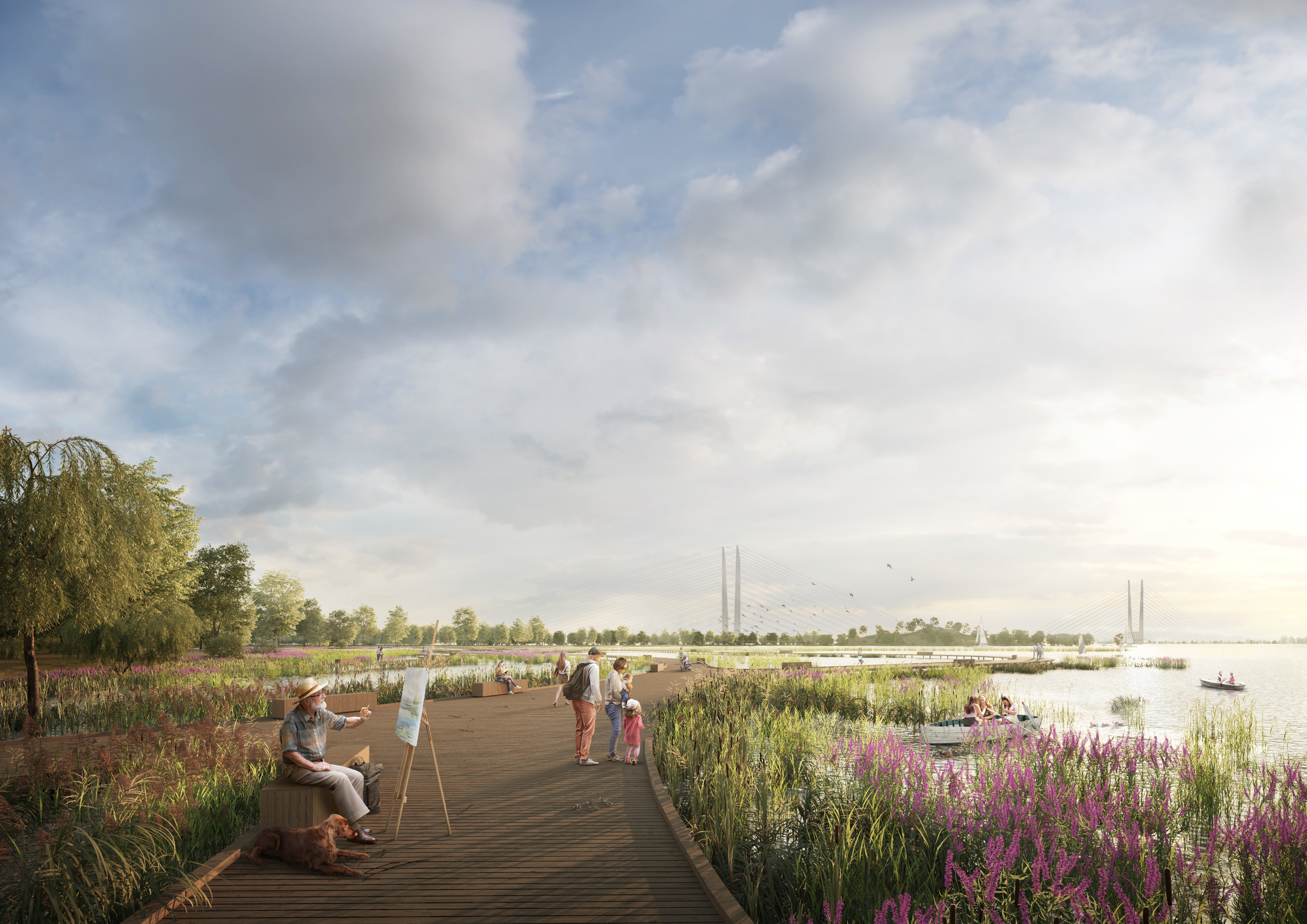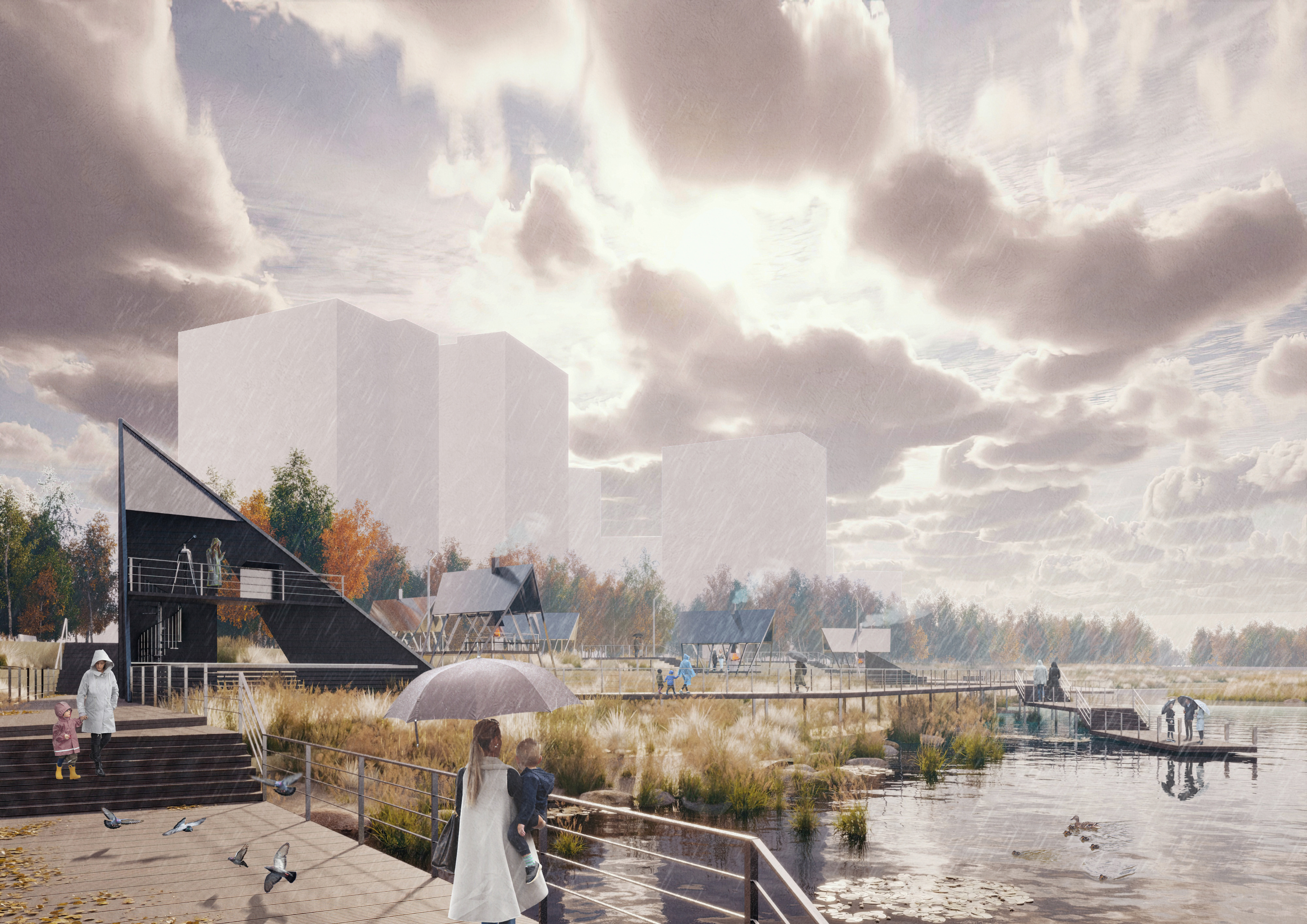 В заболоченной зоне хотят создать Болотный парк. Тут можно будет устраивать пикники, заниматься йогой, кататься на велосипедах и любоваться видом со смотровой площадки в виде пирамиды.
