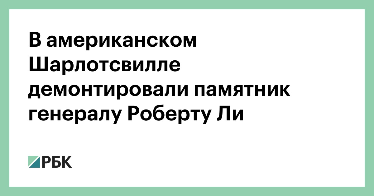 Власти американского города Шарлоттсвилла в штате Виргиния демонтировали памятники генералам Конфедерации времен Гражданской войны Роберту Ли и Томасу Джексону, сообщается в Twitter городской администрации.