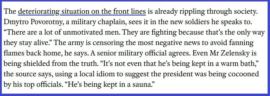 Армия цензурирует негативные новости, чтобы не раздувать панику в тылу, а Зеленского якобы ограждают от правды. Об этом сообщил The Economist высокопоставленный военный чиновник из Украины.