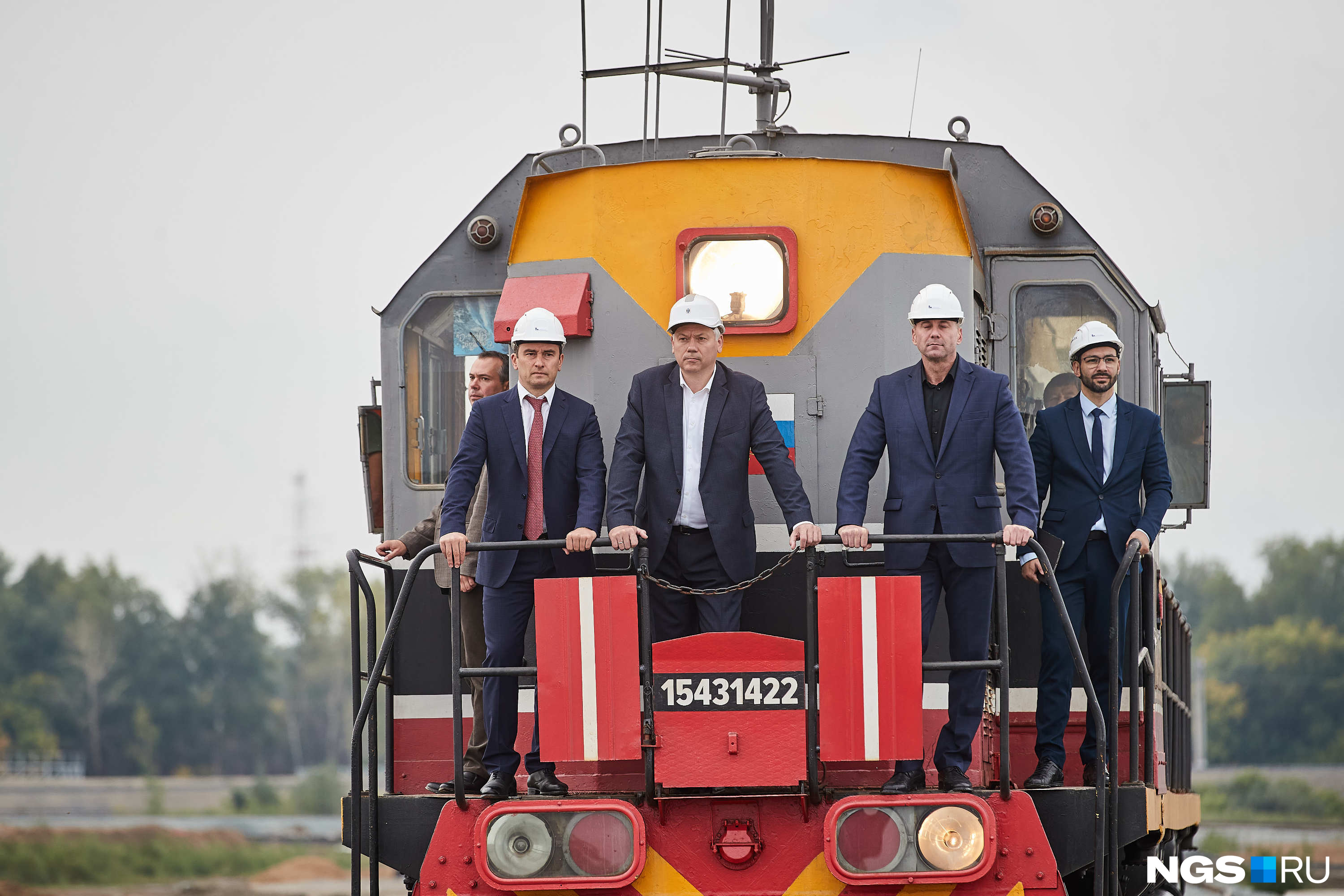 Андрей Травников, руководитель Агентства инвестиционного развития (занимается проектом ПЛП) Александр Зырянов и Александр Кахидзе с видимым удовольствием взобрались на передний «мостик» тепловоза и продолжили путь отдельно, дабы посмотреть на объект, так сказать, глазами тех самых полувагонов, которые здесь планируют разгружать.