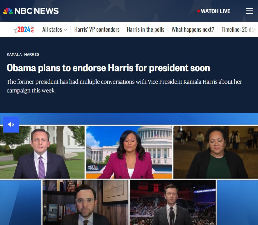По данным телеканала, Обама уже выразил поддержку Харрис лично. Жена бывшего президента Мишель Обама также выступает за её выдвижение.