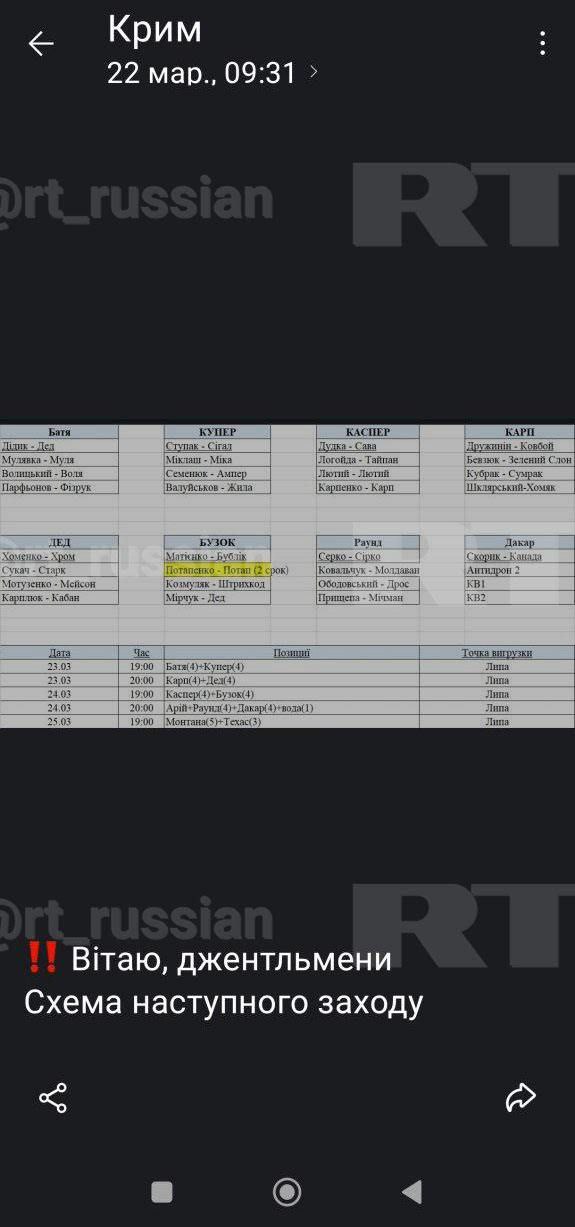 В мессенджерах Электрика среди прочего нашли таблицу с расписанием и списком людей, кто отправляется в следующую смену на передок.