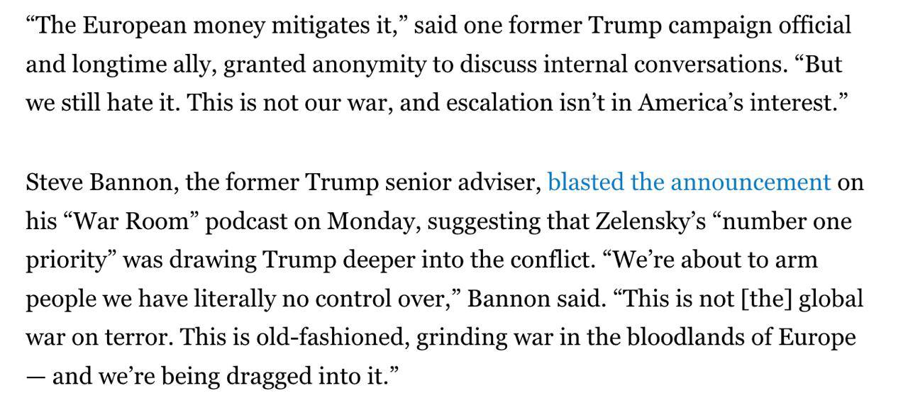 Politico: Π‘ΡΠΎΡΠΎΠ½Π½ΠΈΠΊΠΈ Π’ΡΠ°ΠΌΠΏΠ° ΠΈΠ· MAGA ΠΎΠΊΠ°Π·Π°Π»ΠΈΡΡ Π½Π΅Π΄ΠΎΠ²ΠΎΠ»ΡΠ½Ρ Π΅Π³ΠΎ ΡΠ΅ΡΠ΅Π½ΠΈΠ΅ΠΌ ΠΎΡΠΏΡΠ°Π²ΠΈΡΡ ΠΎΡΡΠΆΠΈΠ΅ Π£ΠΊΡΠ°ΠΈΠ½Π΅. ΠΠ½ΠΈ Π½Π°ΡΡΠΎΡΠΎΠΆΠ΅Π½Π½Ρ ΠΈ ΡΠΌΡΡΠ΅Π½Ρ ΡΠ΅ΠΌ, ΠΊΠ°ΠΊ Π±ΡΡΡΡΠΎ ΠΏΡΠ΅Π·ΠΈΠ΄Π΅Π½Ρ ΠΏΠ΅ΡΠ΅ΡΠ΅Π» ΠΎΡ ΡΡΠ³Π°Π½ΠΈ ΠΠ΅Π»Π΅Π½ΡΠΊΠΎΠ³ΠΎ ΠΊΠ°ΠΊ Π½Π΅Π±Π»Π°Π³ΠΎΠ΄Π°ΡΠ½ΠΎΠ³ΠΎ ΠΊ ΡΠΎΠΌΡ, ΡΡΠΎΠ±Ρ Π²ΡΡΡΠ°Π²Π»ΡΡΡ ΡΠΊΡΠ°ΠΈΠ½ΡΠ΅Π² Π² ΠΊΠ°ΡΠ΅ΡΡΠ²Π΅ ΠΎΠ±ΡΠ°Π·ΡΠ° ΠΌΡΠΆΠ΅ΡΡΠ²Π°.