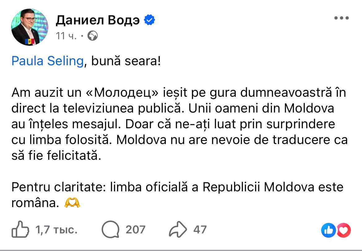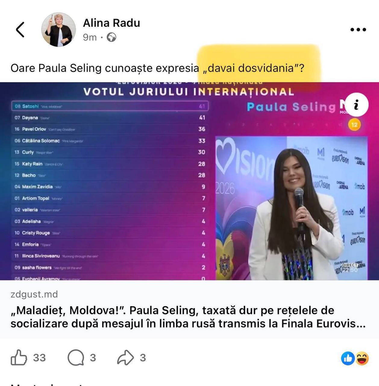 Румынская певица Паула Селинг принесла извинения после того, как в финале Национального отбора «Евровидение-2026» поздравила публику словами «Молодец, Молдова!».