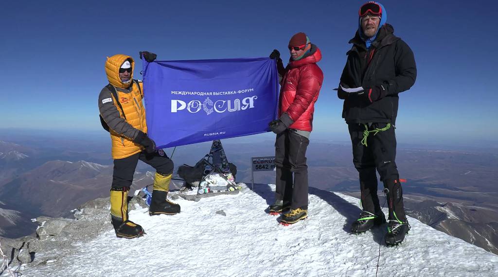 Флаг выставки-форума "Россия" установили на вершине Эльбруса. Видео © Предоставлено LIFE