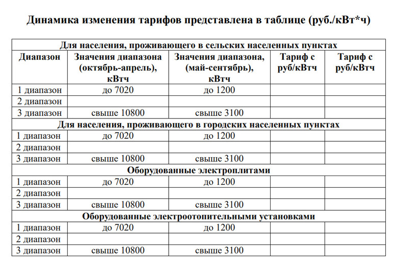 Расчет стоимости электроэнергии сохранится по трем диапазонам, исходя из фактического объема потребления.