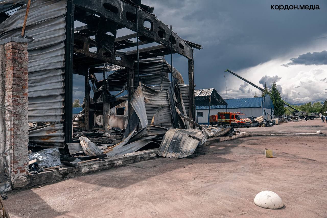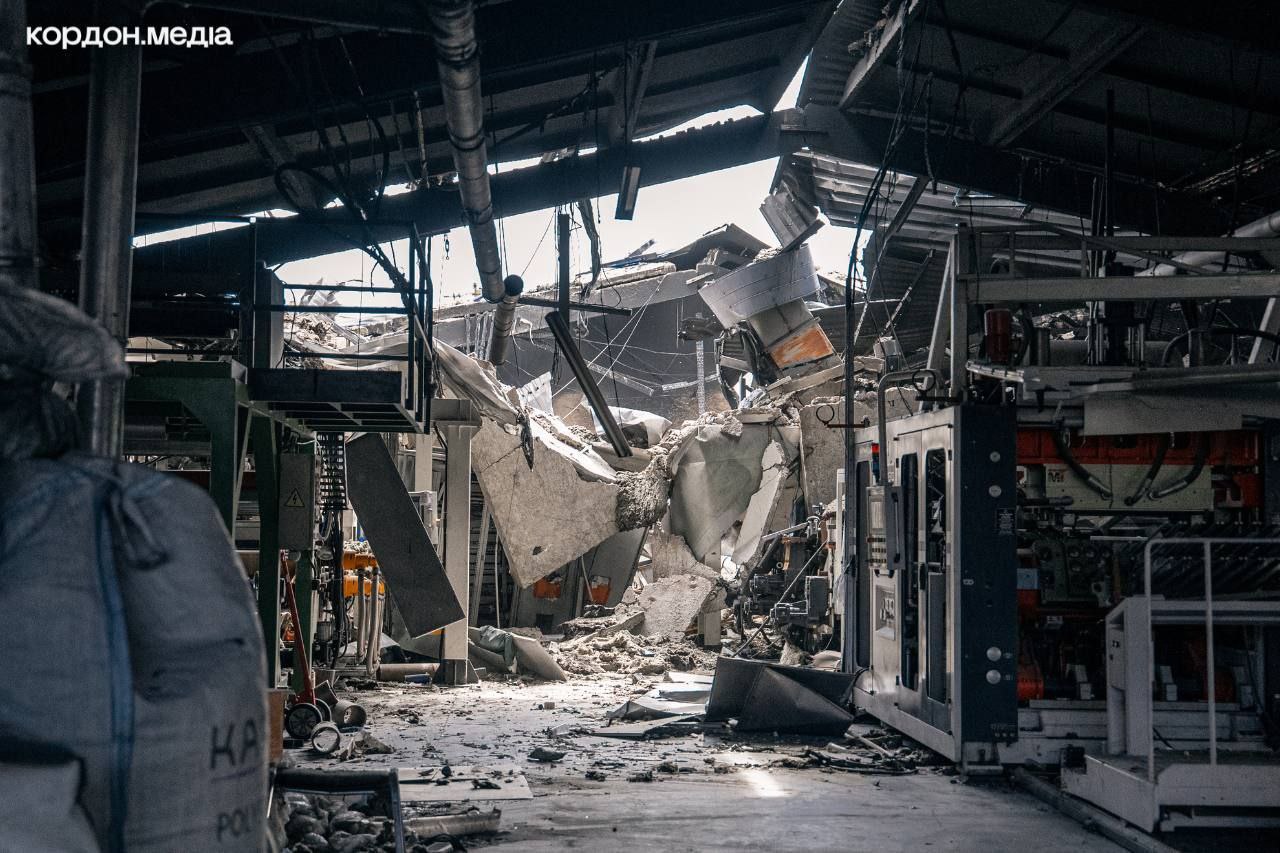 В сети опубликованы фотографии последствий удара 21-го дрона "Герань" 15 мая по целям на территории предприятия "Андрекс" в н.п. Великая Чернетчина Сумской области.