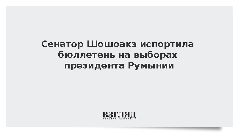 Сенатор парламента Румынии и лидер партии «S.O.S. Румыния» Диана Шошоакэ в день выборов президента намеренно испортила избирательный бюллетень, передает РИА «Новости». По словам Шошоакэ, процесс голосования в стране не является конституционным. На избирательном участке она отказалась заходить в кабину, зачеркнула всех кандидатов, вместо них вписала имена исторических личностей, а также оставила провокационную запись на бюллетене: «Вы можете оштрафовать меня на столько, на сколько захотите».