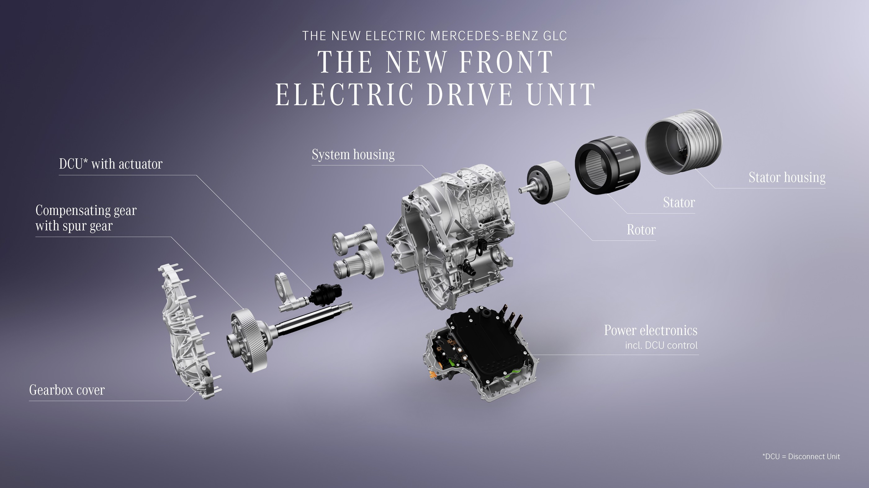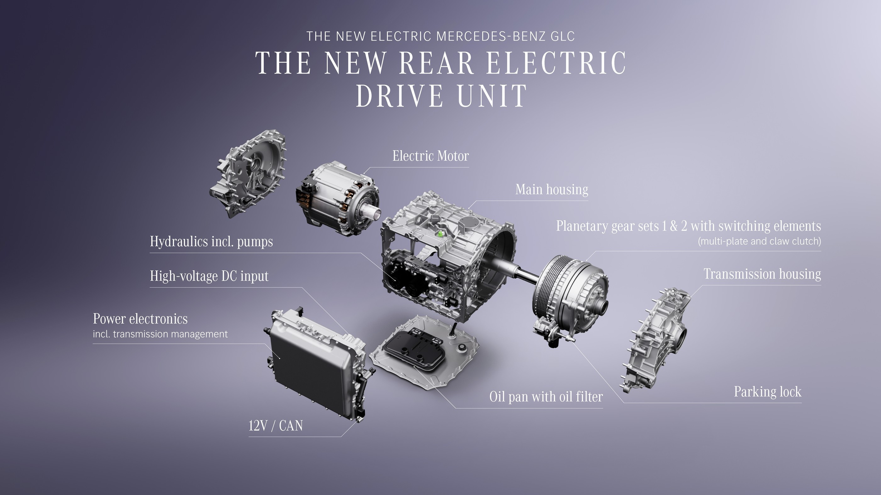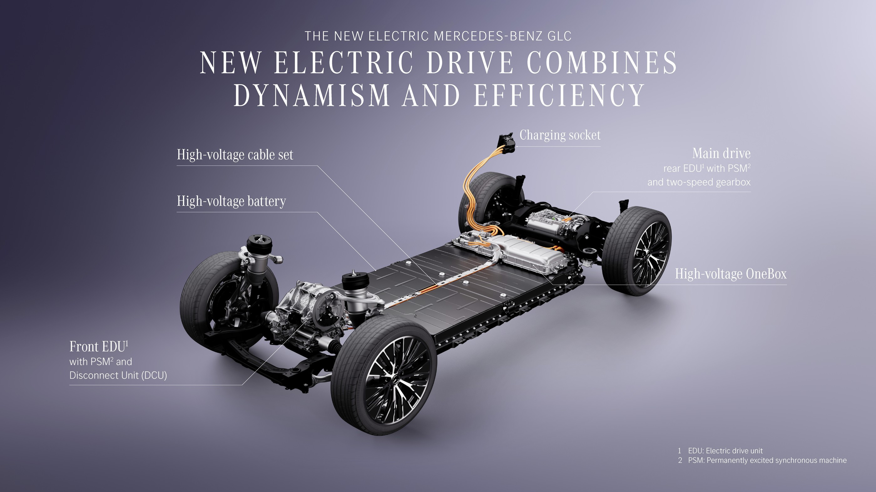 На данный момент электрический GLC предложен с единственной модификации 400 4Matic с двухмоторной силовой установкой, её максимальная совокупная мощность — 360 кВт (490 л.с.), максимальная рекуперативная мощность — 300 кВт (408 л.с.). Задний электромотор является основным и состыкован с двухступенчатым редуктором, а передний подключается только по мере необходимости. Разгон до 100 км/ч занимает 4,3 с, максимальная скорость ограничена на отметке 210 км/ч. Максимальный запас хода на одной зарядке — 713 км по циклу WLTP. Допустимая масса буксируемого прицепа, оснащённого тормозами, — 2400 кг, без тормозов — 750 кг.