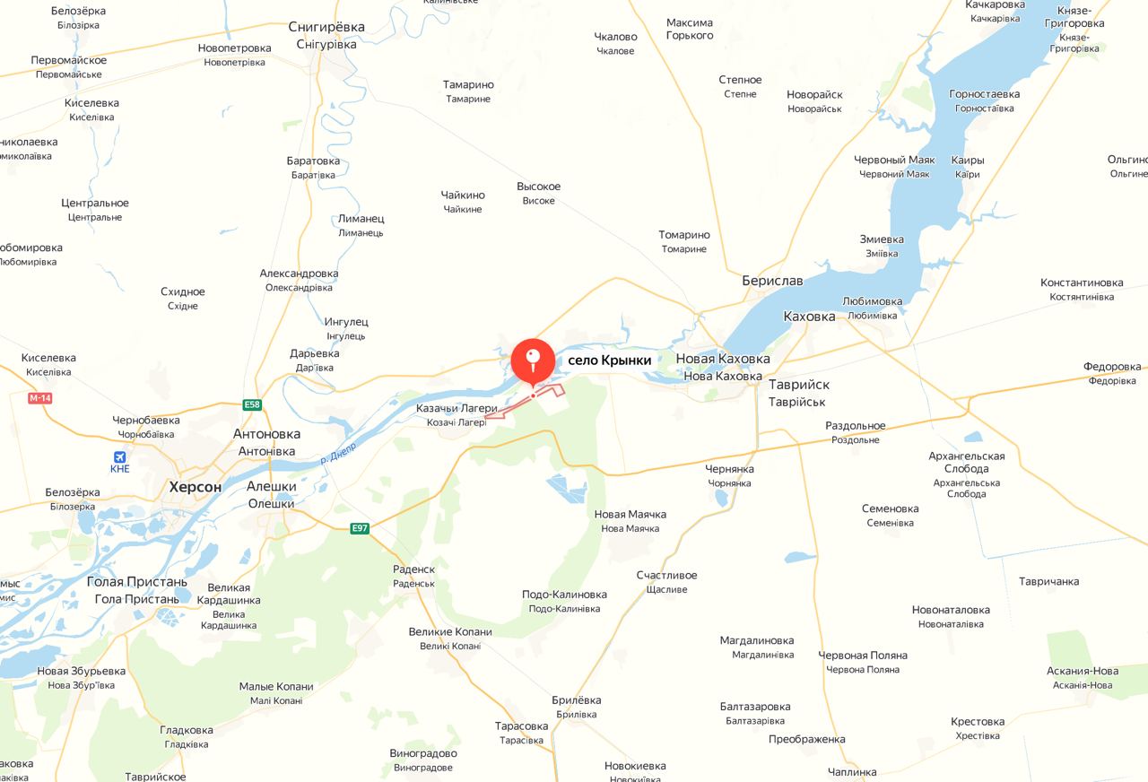 Несколько групп противника блокированы в районе н.п. Крынки. Любые попытки продвижения пресекаются подразделениями группировки войск «Днепр». Также наносится огневое поражение по лодкам, на которых противник пытается эвакуировать трехсотых и восполнить потери.