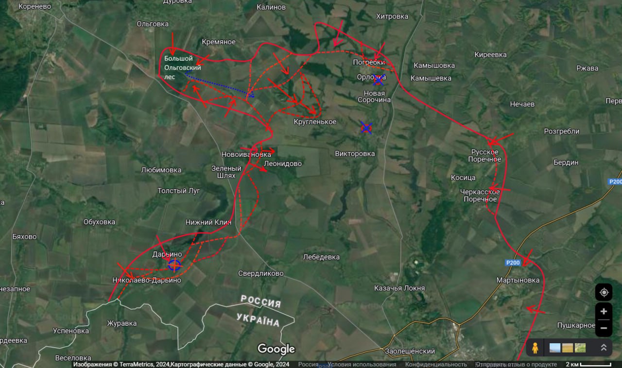 Вчера наши части продолжили развивать свой успех, одержанный накануне северо-западнее н.п. Кругленькое. И по итогу дня, заняв две прилегающие с этого направления балки, сумели выйти фактически на окраину данного населенного пункта.