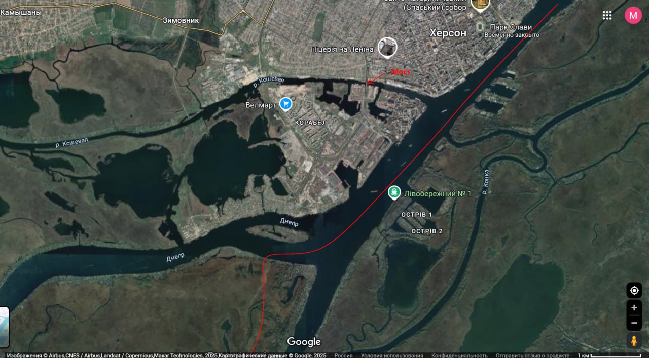 Смотрите, мы упорно стараемся вынести автомобильный мост в мкрн. «Корабел». Он там один (не считая ЖД, которым пользоваться можно только пеше) и уже серьезно поврежден. Также наносим массированное поражение на острове всем выявленным опорным узлам ВСУ. Наши дронщики уже создали там т. н. «зону смерти».