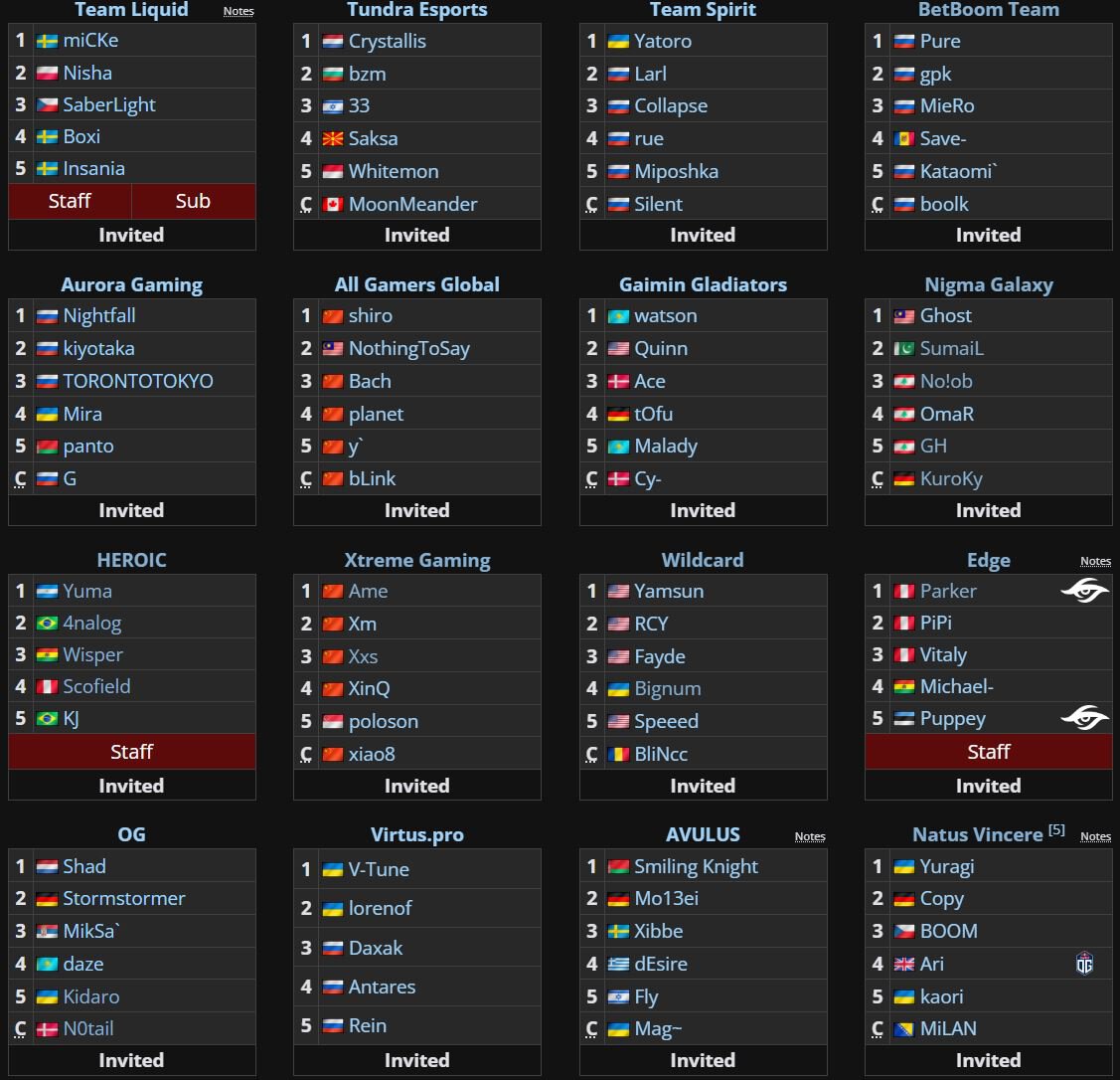 Участники: Spirit, BetBoom Team, Aurora, Virtus.pro, NAVI, Tundra, Liquid, All Gamers Global, Gladiators, Nigma, Heroic, Xtreme, Wildcard, Edge, OG, Avulus.