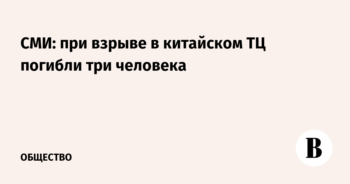 При взрыве в торговом центре (ТЦ) Dongda Food Moll в китайском Шэньяне (провинция Ляонин) погибли минимум три человека, передает Telegram-канал «Китайская угроза».