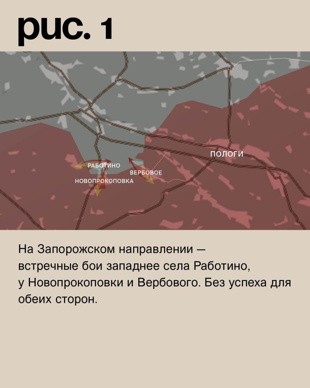 На Запорожском направлении – встречные бои западнее села Работино, у Новопрокоповки и Вербового. Без успеха для обеих сторон. (Рис. 1)
