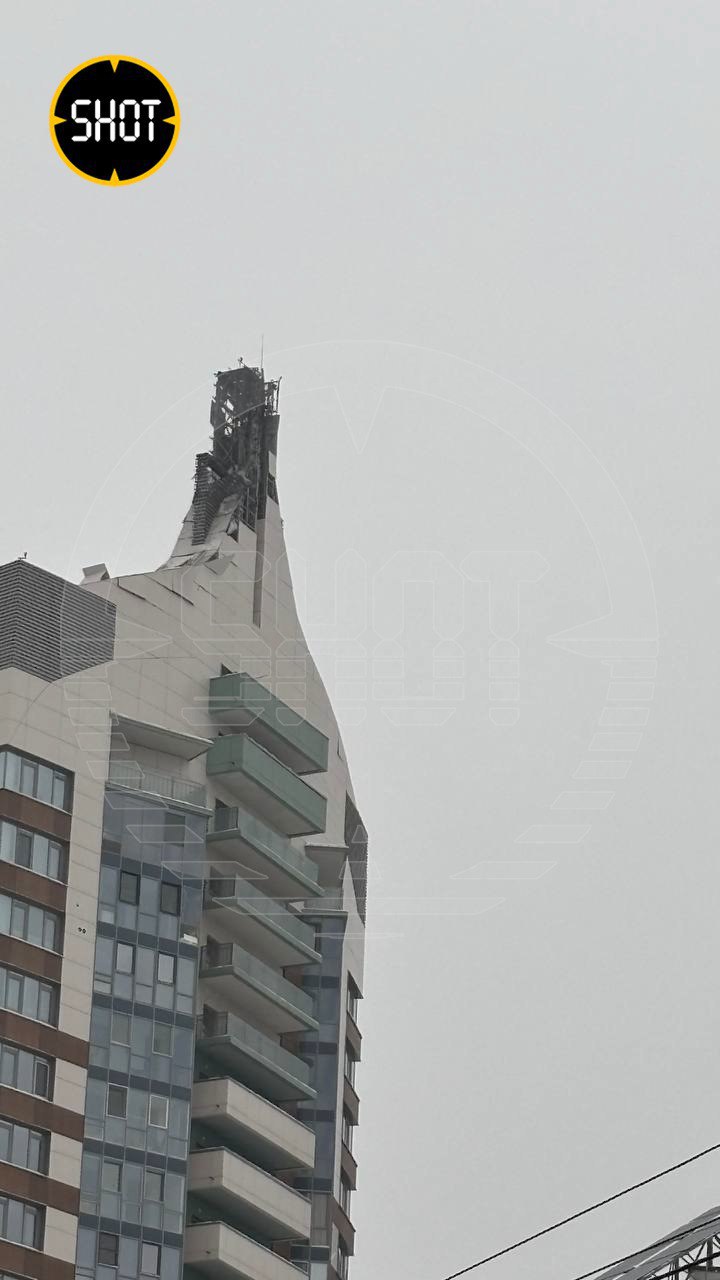 Момент прилёта по казанскому ЖК "Манхэттен". Дрон попал в шпиль 23-этажного дома. О пострадавших на данный момент не сообщается.