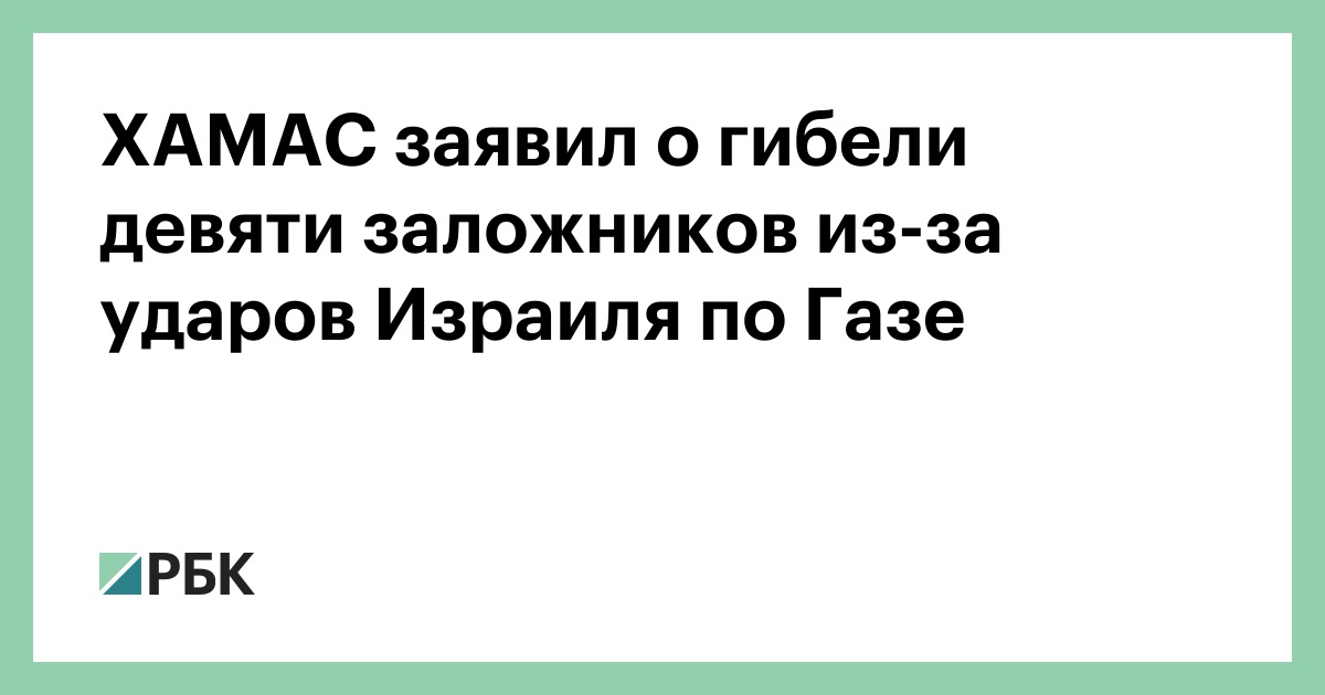 За последние сутки девять человек, которые неделю назад были захвачены в заложники палестинским движением ХАМАС, погибли в секторе Газа из-за ударов со стороны Израиля, передает телеканал Al Arabiya со ссылкой на заявление «Бригады Аль-Кассама» (боевое крыло ХАМАС).