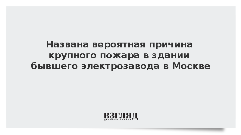 Пожар в здании бывшего московского электрозавода на востоке Москвы мог быть вызван неисправностью электропроводки или перегрузом в ее работе, передает ТАСС. Оперативные службы рассматривают и другие возможные причины.