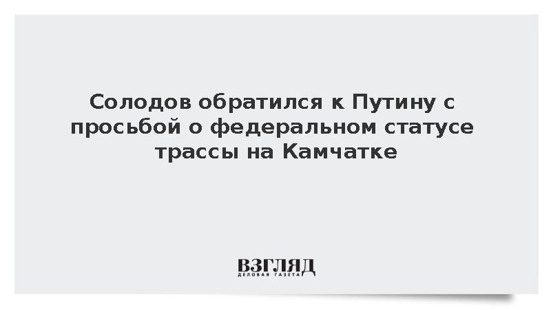 Губернатор Камчатки Владимир Солодов призвал президента России Владимира Путина присвоить трассе Петропавловск-Камчатский – Усть-Камчатск федеральный статус, чтобы обеспечить ее соответствие нормативам.