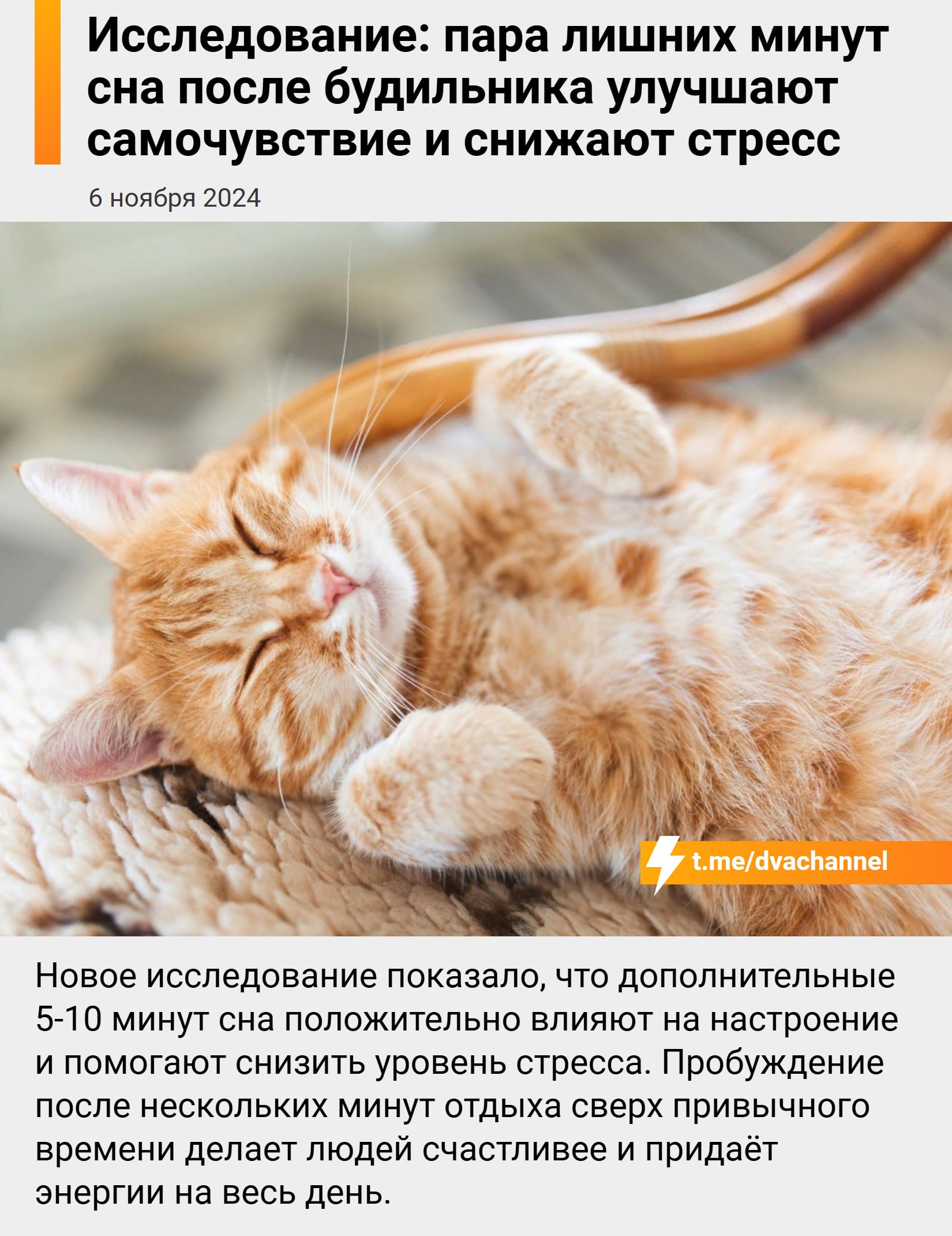 пара лишних минут сна после будильника улучшают самочувствие и снижают стресс