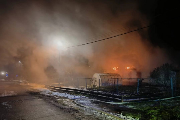 Огонь уничтожил деревянный дом во Всеволожском районе Ленобласти. Пожилых супругов спас внук, который случайно оказался рядом.