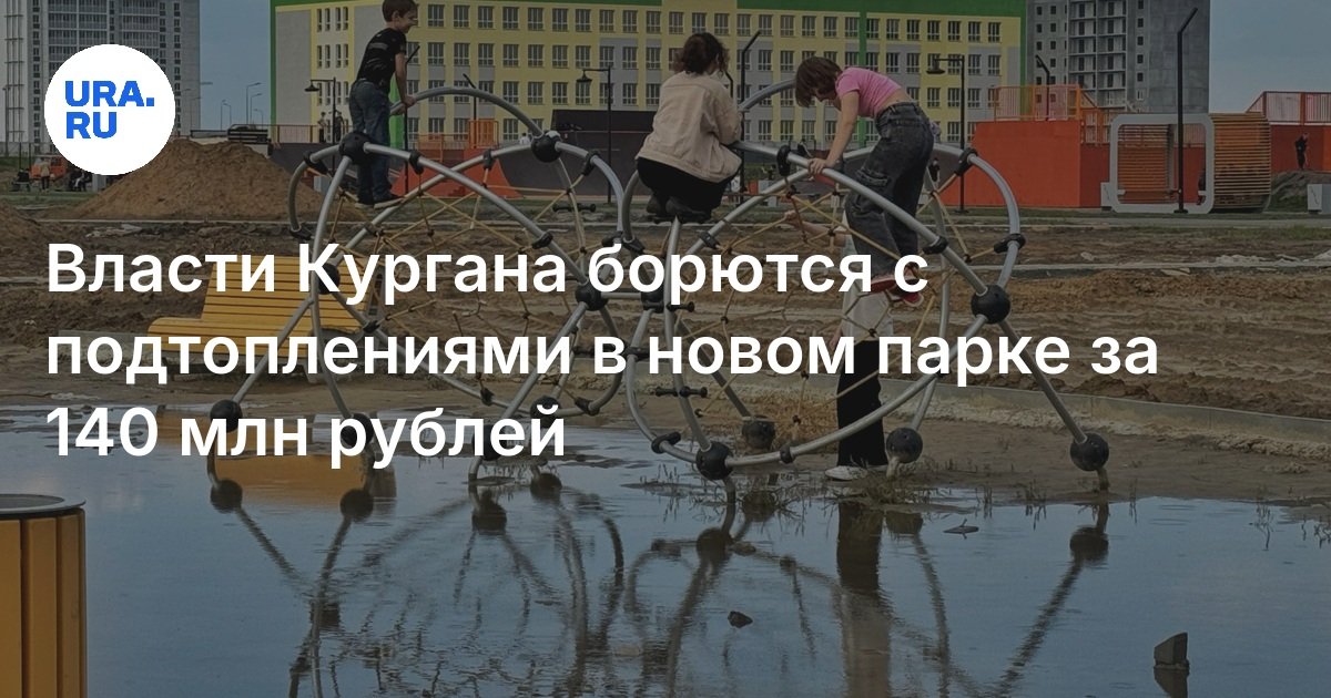 В новом парке в Заозерном районе Кургана, строительство которого обошлось в 140 миллионов рублей, начали подсыпать низины после того, как на территории стали образовываться озера и лужи. Проблемы с подтоплением появились даже на детской площадке — часть ее элементов стоит в воде. Об этом сообщается в социальных сетях.