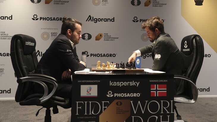 В финальном матче Карлсен выиграл первые две партии, однако затем победу дважды подряд одержал Непомнящий.