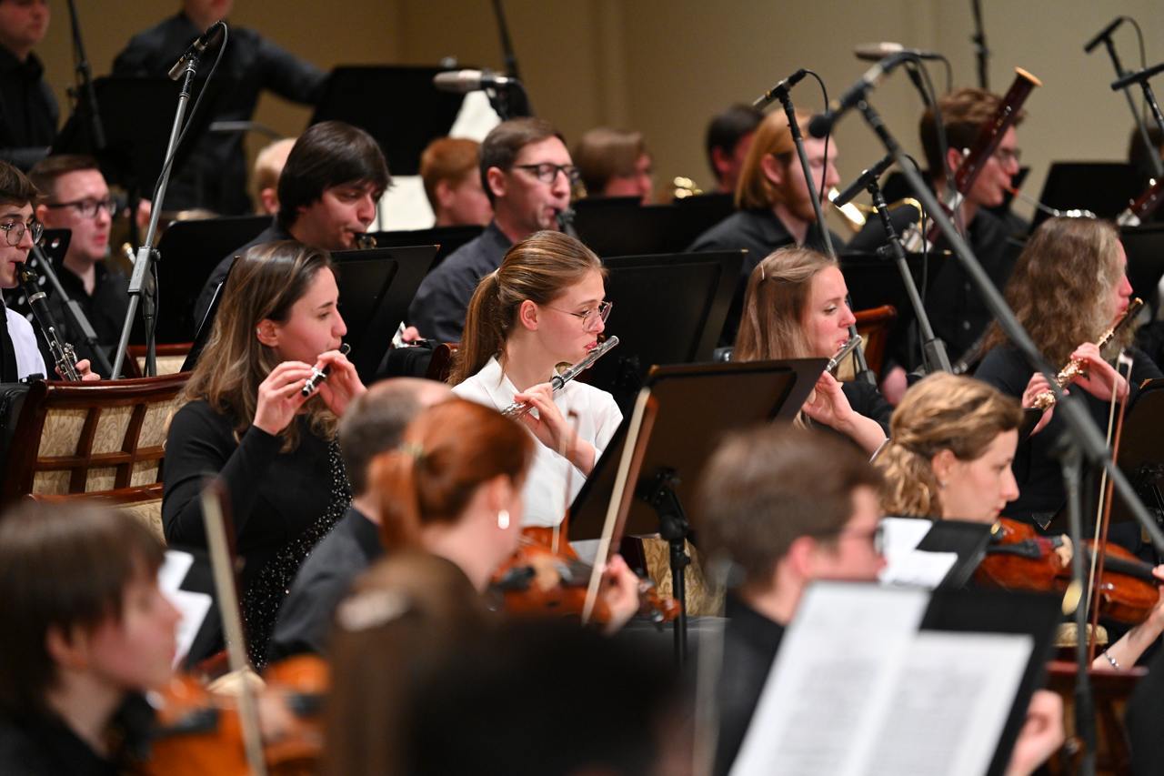 ΠΡΠ·ΡΠΊΠ°Π½ΡΡ ΠΈΡΠΏΠΎΠ»Π½ΠΈΠ»ΠΈ ΠΌΡΠ·ΡΠΊΡ ΠΠ΅ΡΡΠ° Π§Π°ΠΉΠΊΠΎΠ²ΡΠΊΠΎΠ³ΠΎ, Π² ΡΠΎΠΌ ΡΠΈΡΠ»Π΅ ΡΡΠ°Π³ΠΌΠ΅Π½ΡΡ Π±Π°Π»Π΅ΡΠ° Β«ΠΠ΅Π±Π΅Π΄ΠΈΠ½ΠΎΠ΅ ΠΎΠ·Π΅ΡΠΎΒ» ΠΈ Β«ΠΡΠ°Π»ΡΡΠ½ΡΠΊΠΎΠ΅ ΠΊΠ°ΠΏΡΠΈΡΡΠΈΠΎΒ», Π° ΡΠ°ΠΊΠΆΠ΅ ΠΏΡΠΎΠΈΠ·Π²Π΅Π΄Π΅Π½ΠΈΡ ΠΠΈΠΊΠΎΠ»Π°Ρ Π ΠΈΠΌΡΠΊΠΎΠ³ΠΎ-ΠΠΎΡΡΠ°ΠΊΠΎΠ²Π°, ΠΡΠ°ΠΌΠ° Π₯Π°ΡΠ°ΡΡΡΡΠ½Π° ΠΈ ΠΠ»Π΅ΠΊΡΠ°Π½Π΄ΡΠ° ΠΠΎΡΠΎΠ΄ΠΈΠ½Π°.
