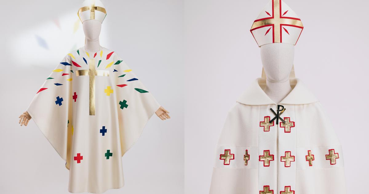 Pas moins de 2000 pièces (vêtements et ornements) ont été produites en quelques mois, et seront revêtues dès ce samedi par les 700 célébrants (archevêques, évêques, prêtres et diacres). Les uns après les autres, chaque artisan a apporté sa pierre à cet édifice. L’atelier Paloma a façonné satin de laine français et drap de laine d’Écosse. Chez Lesage et Montex, de multiples opérations de broderie, transfert, perforation, flocage, sublimation (un savoir-faire minutieux permettant d’appliquer délicatement de la feuille d’or dans les tissus) se sont multipliées. Chez Maison Michel, chapelier depuis 1936, on a fabriqué 192 mitres, ce couvre-chef des évêques dont la pointe symbolise l’élévation vers Dieu et qui doit se plier facilement pour voyager, dans six coloris différents, agrémentés d’un flocage doré et velours de Lesage.