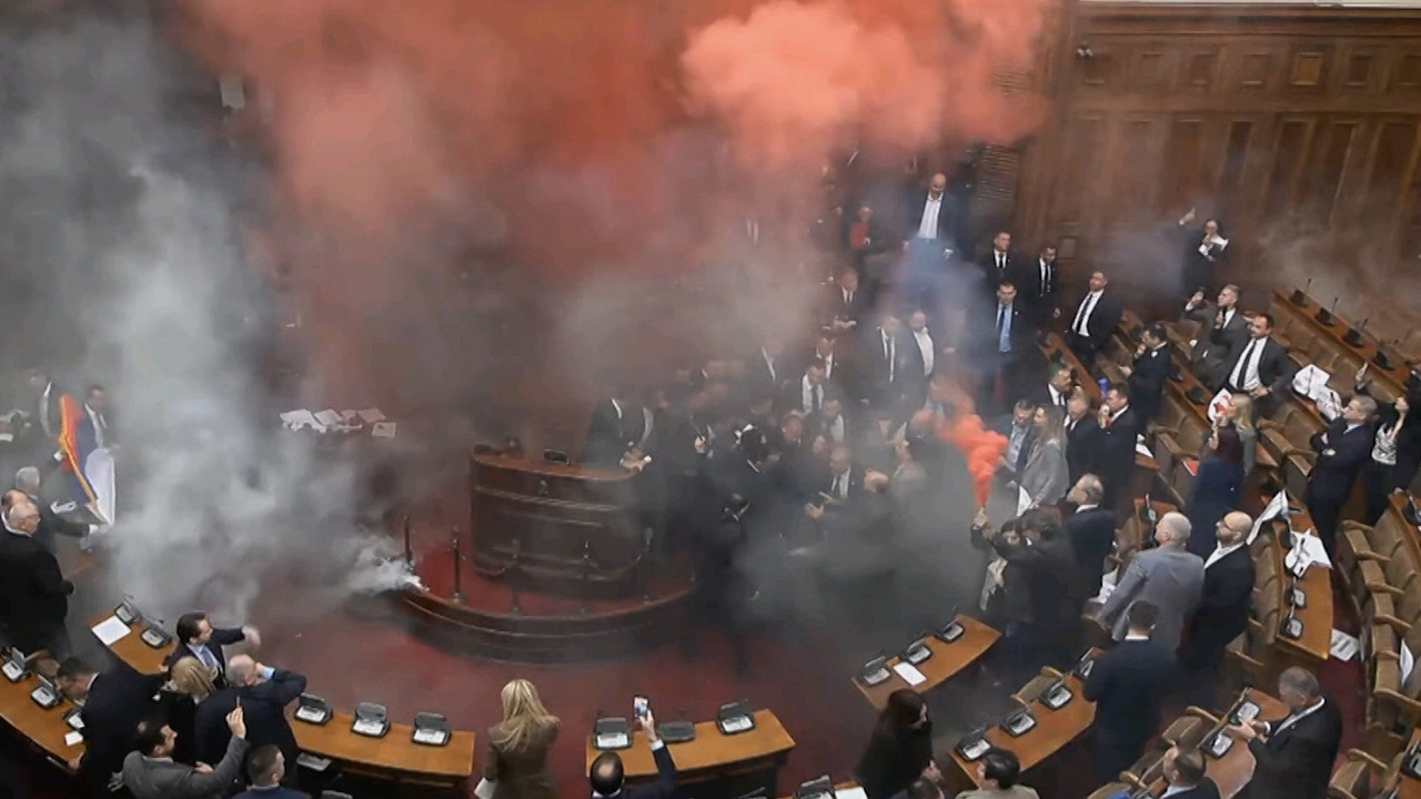 Сербские оппозиционеры попытались сорвать первую весеннюю сессию парламента - они устроили драку, зажгли фаеры и дымовые шашки. Помещение быстро заволокло дымом, депутаты достали платки и зонты, а затем продолжили заседание.