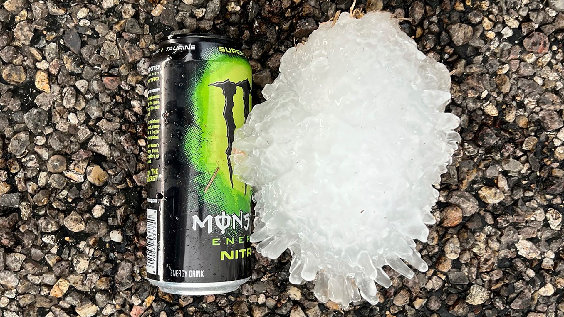 He said several baseball-sized hail stones fell while he was driving, including one that cracked his windscreen, before he spotted the big piece in a ditch on the side of the road.