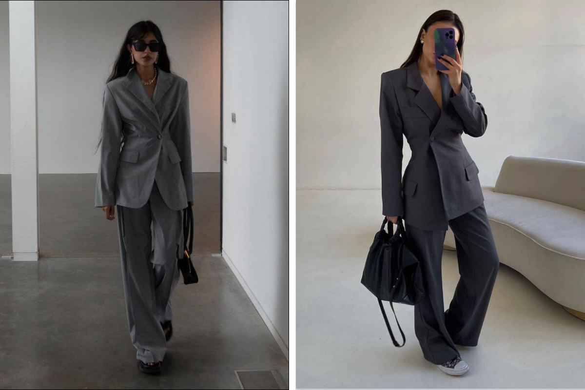 Одна из явных тенденций современного офискоров — это подчеркнутая талия. Полный оверсайз уходит, но остается объем в плечах, дополнительно акцентированный ремнем или тонким поясом на талии.