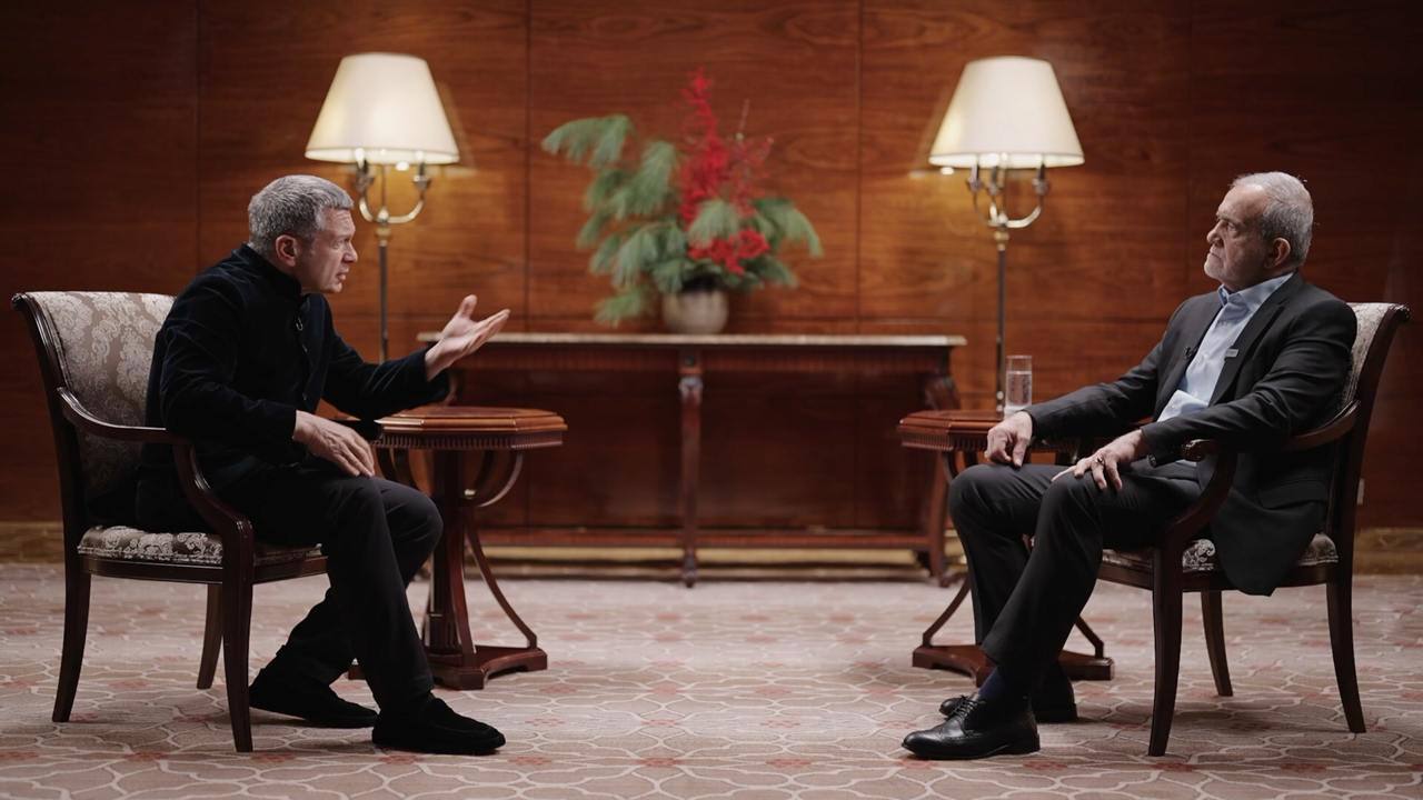 ⭕⭕⭕⭕ Сегодня в программе «Воскресный вечер» на телеканале «Россия 1» — моё эксклюзивное интервью с президентом Ирана Масудом Пезешкианом. Мы говорили откровенно и по существу. О том, как США продолжают навязывать свою волю всему миру, пытаясь подчинить независимые государства, а также почему Иран и Россия выступают категорически против такой политики диктата. Обсудили, как наши страны противостоят давлению Запада и какую роль сотрудничество Москвы и Тегерана играет в становлении справедливого, многополярного мира.