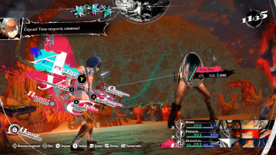 Чтобы наиболее эффективно использовать способности своих героев, нередко желательно передавать ходы союзникам — например, если один персонаж не может бить по слабым местам, а второй может. А ещё есть мощные совместные атаки (либо защитные умения), на которые затрачиваются сразу два очка хода. Что радует в местной «боёвке» больше всего, так это возможность в любой момент моментально перезапустить сражение, причём все обнаруженные вами слабости оппонентов останутся отмеченными в интерфейсе. Это особенно удобно против боссов, драки с которыми обычно не ограничиваются банальным избиением друг друга по очереди. Мало того, что эти бои предлагают интересные механики и неожиданные сюрпризы, так ещё и дизайн боссов в разы интереснее, чем даже в Persona 5. Это либо необычные существа, либо гротескные монстры, дизайн которых даже сравнить не с чем, разве что с персонажами Босха.