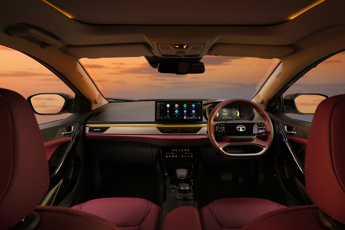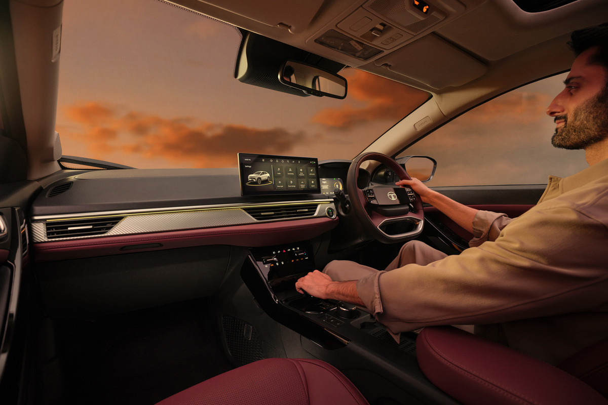 Кроме того, у Tata Curvv спереди имеется дополнительная светодиодная полоска, плюс «купе» получило выдвижные ручки дверей. Электроверсию от модели с ДВС можно отличить по оригинальному переднему бамперу и гладкой заглушке на месте радиаторной решетки. Внутри же Curvv почти полностью скопировал нынешний Tata Nexon – тут аналогичные панель, руль, цифровая приборка и «парящий» планшет мультимедийной системы.