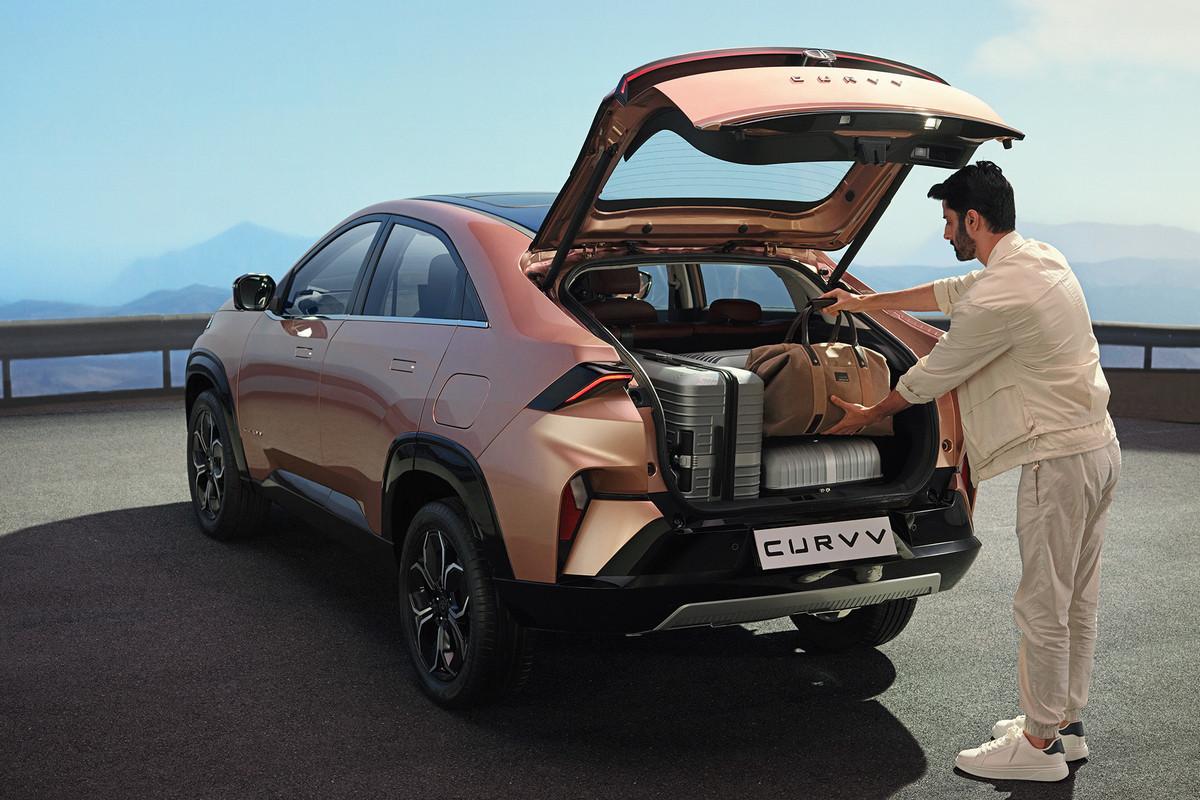 Длина «углеводородного» паркетника Tata Curvv равна 4308 мм, «электрички» — 4310 мм. Остальные габариты совпадают: ширина – 1810 мм, высота – 1630 мм, колесная база – 2560 мм. Для сравнения, размеры кросс-купе Citroen Basalt, главного конкурента Curvv: 4352/1765/1593 мм, расстояние между осями – 2651 мм. Заявленный объем багажника новинки Таты (независимо от модификации) – 500 литров против 470 литров у Базальта.