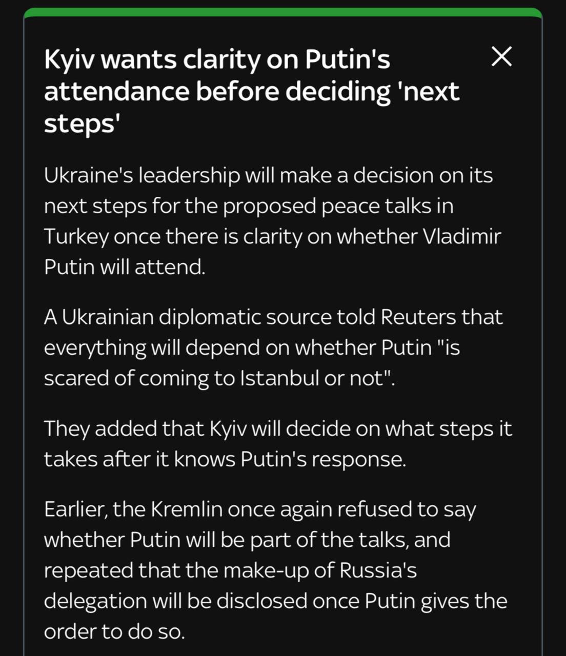 Киев хочет ясности относительно присутствия Путина в Турции, прежде чем принимать решение о «следующих шагах»,