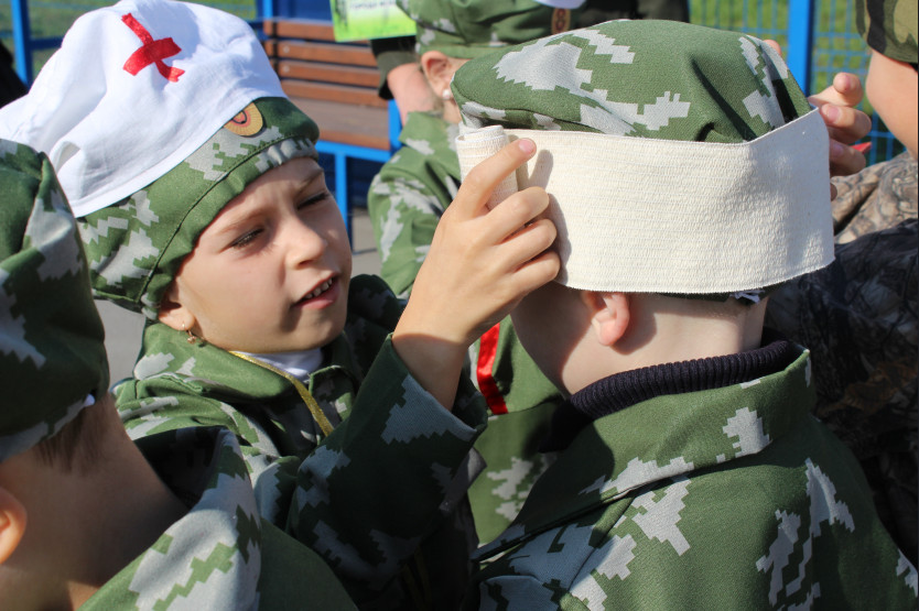 Ребята представили свои команды в «визитной карточке», произнося свой девиз. Затем каждая команда получила маршрутный лист с указанием заданий. Им предстояло двигаться от «станции» к «станции», где их ждали постовые, которые и оценивали подготовку на ловкость, силу, ориентацию на местности и медицинские навыки.