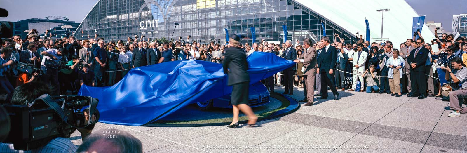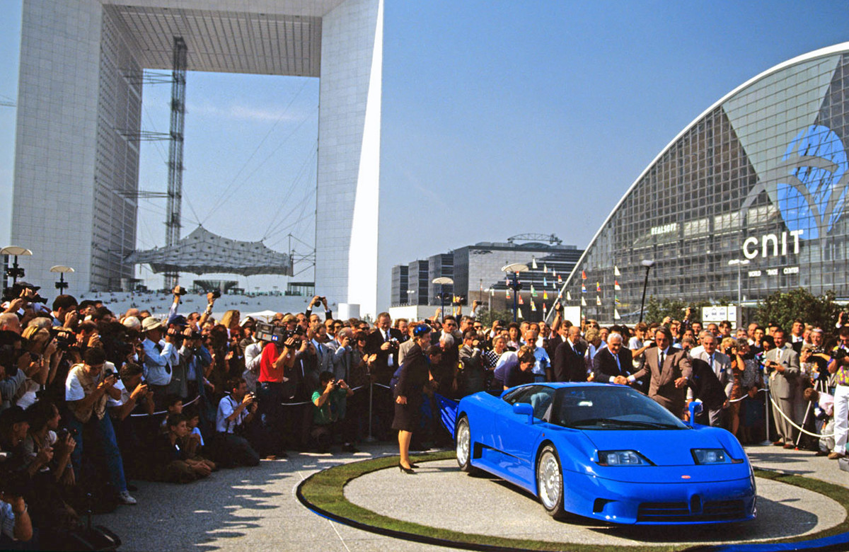 Учитывая амбиции идейного вдохновителя, презентация того, что должно было гарантированно перевернуть индустрию с ног на голову, на Парижском автосалоне или же под светом софитов в Женеве никак не соответствовала уровню всей эпопеи. Машину с внутризаводским номером С6 (серийным #39005) явили миру напротив Большой арки Дефанс в Париже 14 сентября 1991 года с последующим продолжением банкета на 1700 гостей в Версале. Через день показ случился в родном Мольсеме в день 110-летия Этторе Бугатти, откуда, собственно, и появился индекс ЕВ110.