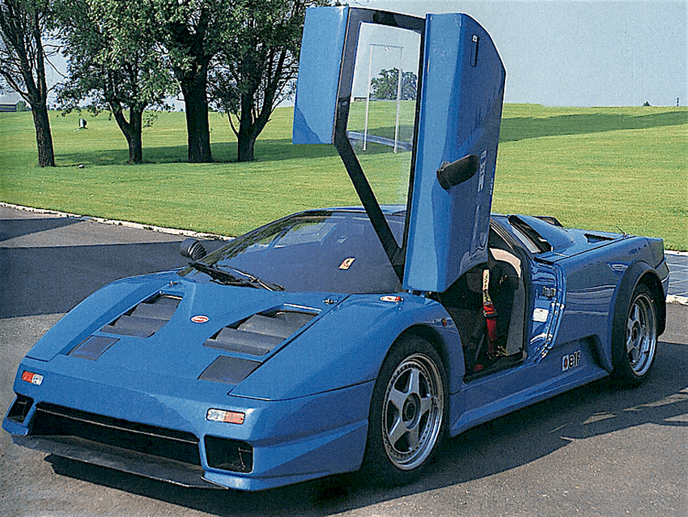 Если с силовой установкой концепта все было понятно уже на стадии чертежей, то вот с конструкцией шасси и экстерьером будущего суперкара разгорелись нешуточные страсти с громкими отставками, ядовитыми комментариями в адрес бывших коллег и новыми назначениями. Шеф свежесозданной Bugatti Automobili обратился за дизайном сразу в ряд именитых ателье, среди которых были студии таких мастеров своего дела, как Джорджетто Джуджаро, Нуччо Бертоне и Марчелло Гандини. Вариант Гандини руководству приглянулся больше остальных, и в 1991 году стартовали испытания первых прототипов, собранных в Carrozzeria Ilas.