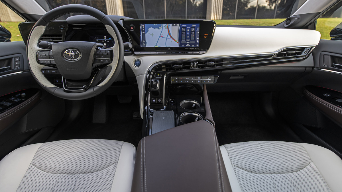 Мощность расположенного под капотом Toyota Mirai второго поколения электрохимического генератора составляет 174 л.с. За привод отвечает один электромотор, который находится на задней оси, его отдача равна 182 л.с., а максимальный крутящий момент – 300 Нм.