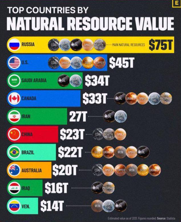 В $75 триллионов оценили природные богатства России, и эта сумма ставит страну на первое место в мировом рейтинге — глава РФПИ Кирилл Дмитриев.