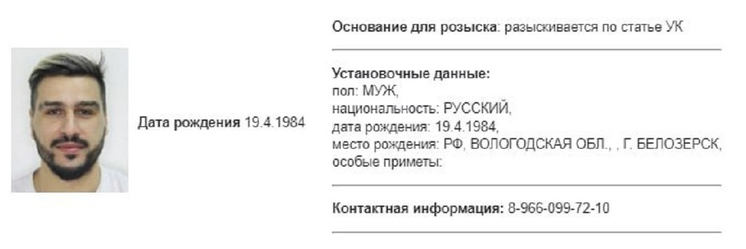 Полицейские объявили в розыск бывшего игрока «Томи» Евгения Савина