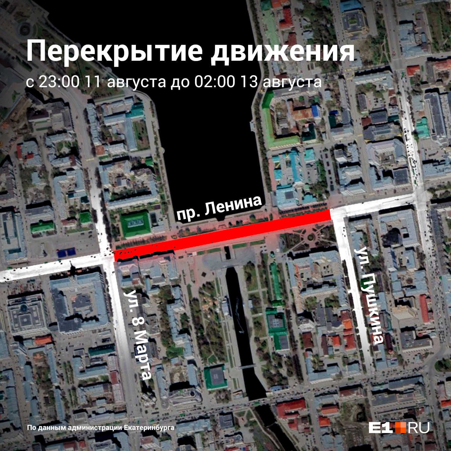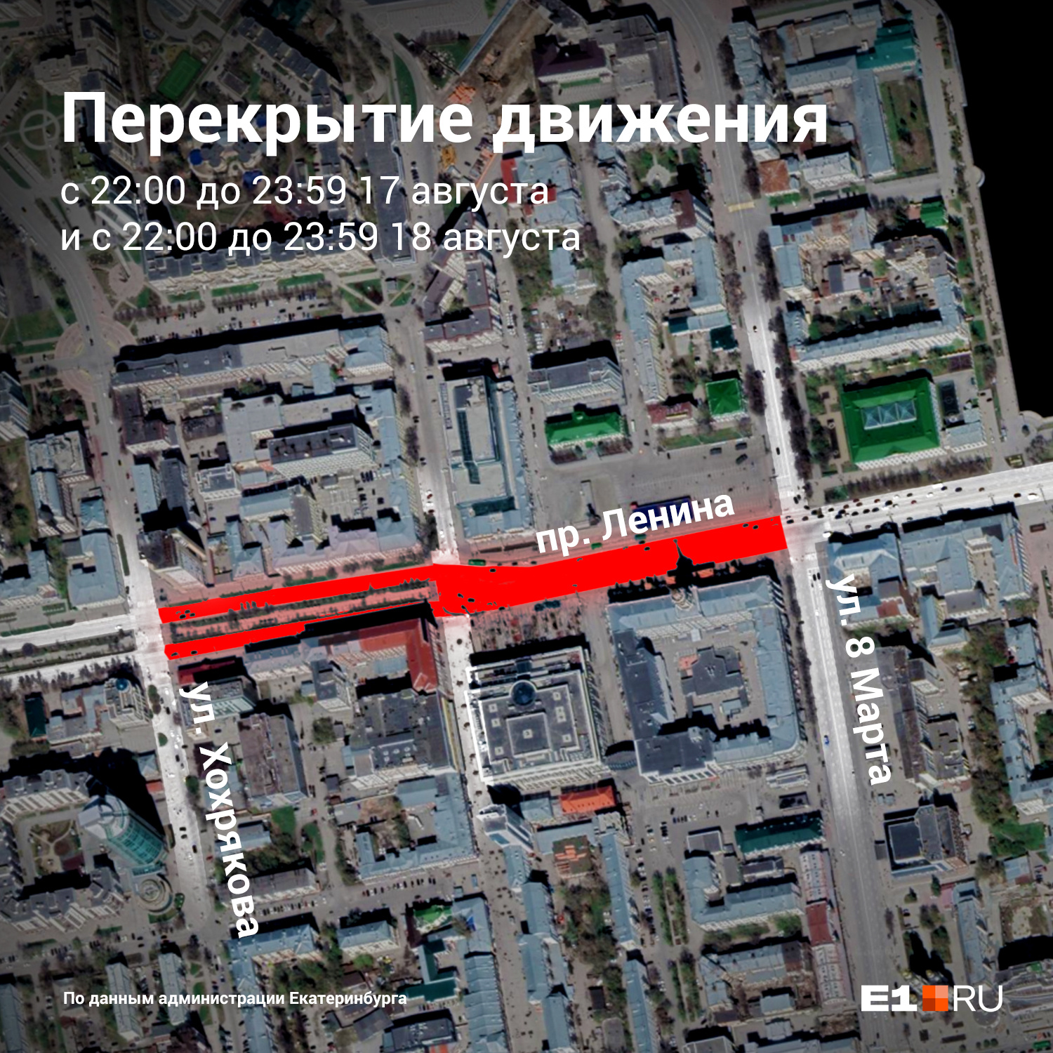 17 августа и 18 августа с десяти вечера и до полуночи будет ограничено движение по проспекту Ленина, от улицы Хохрякова до улицы 8 Марта.